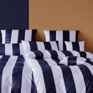 DUO ist eine Mako Satin Bettwäsche mit einem zweifarbigen Streifen. Das markante Design wird durch die schönen Farbkombinationen unterstrichen. Wählen Sie zwischen vier verschiedenen Colorits und kombinieren Sie nach Lust und Laune auch mit dem Design PLENTY. Die Bettwäsche schließt mit einem farblich passenden Reißverschluss.
